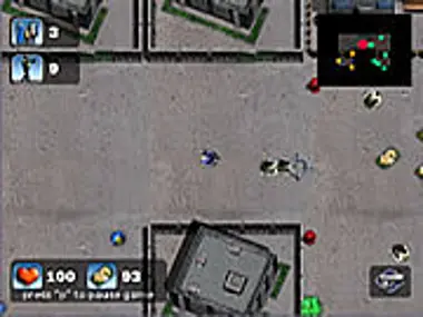 In between missions, you'll stock up in the Upgrade Store, increasing the power of your weapons and armor. Then it's back to more zombie-shooting fun! With 19 levels and lots of different zombies, Zombie Storm is non-stop zombie slaying madness! Remember, you don't have to save all the citizens - you can pass the level if even one is left standing at the end. So find your favorite citizen and follow him around, blasting enemies that try to convert him to the undead.
